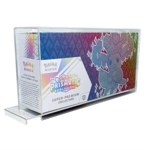 Hochwertiges Acryl Case, welches Eure Prismatische Entwicklungen - Super Premium Kollektion (Deutsche Variante) bzw. Prismatic Evolution - Super Premium Collection (Englische Variante) optimal vor Kratzern und Staub schützt.