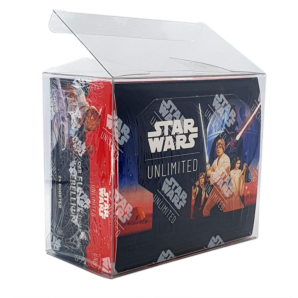 Hochwertige Premium PET Schutzhülle in 0,5 mm Stärke, welche Eure Star Wars Unlimited Booster Displays optimal vor Kratzern und Staub schützt. Auch passend für noch eingeschweißte Displays!